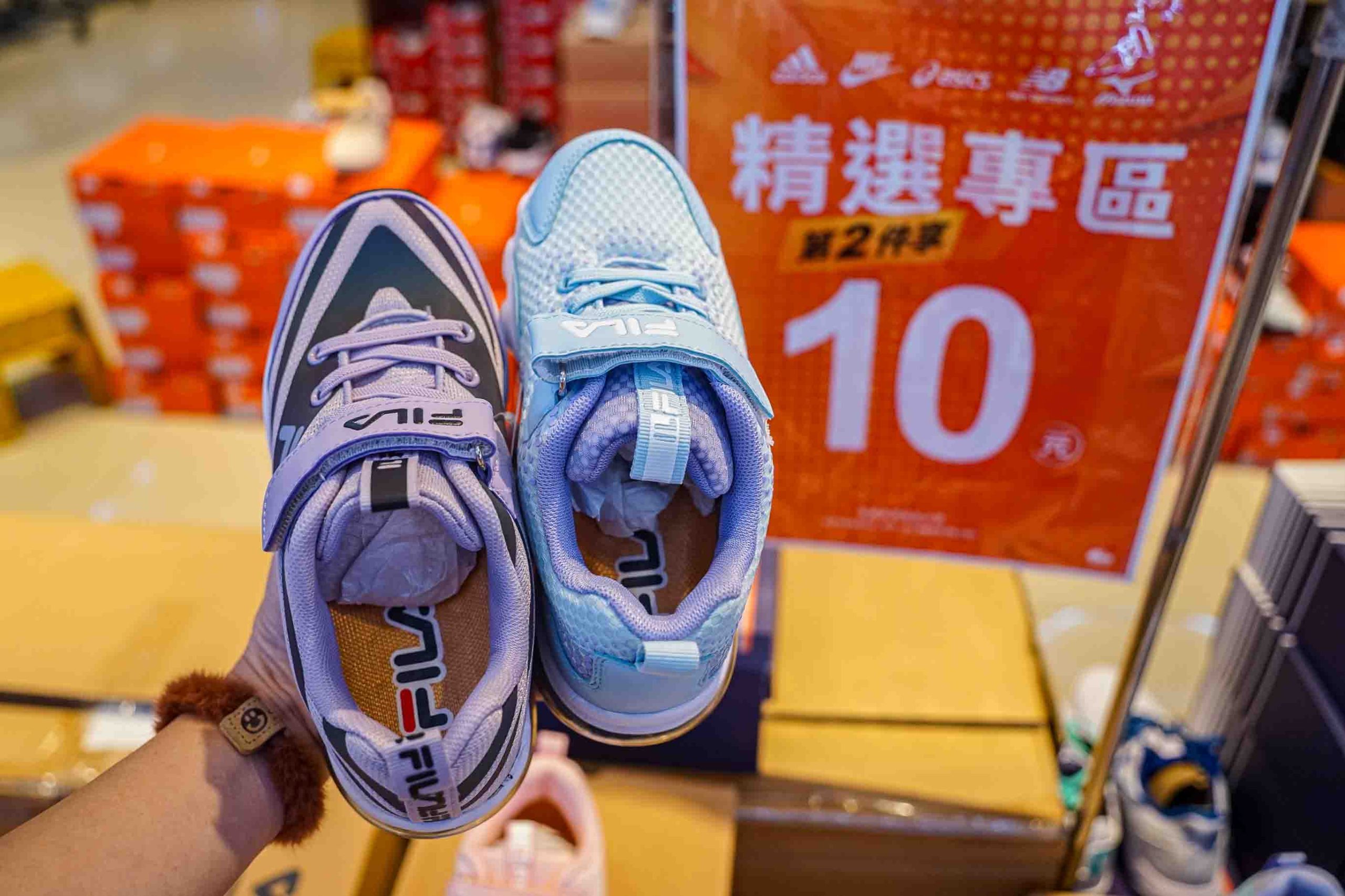 這次新款式鞋款多了很多!多圖給大家參考,趁現在特價優惠就來買新鞋,暑假外出遊玩就是最靚的仔,FILA運動鞋第二雙只要10元,平均一雙5折優惠,NIKE、MIZUNO任選兩雙特價3000元,大人小孩款式都很齊全,全都是知名品牌,滿足各種不同年齡層的需求,從男女老幼款式都有,而且鞋款都很好看很時髦喔。(依照現場公告為主)