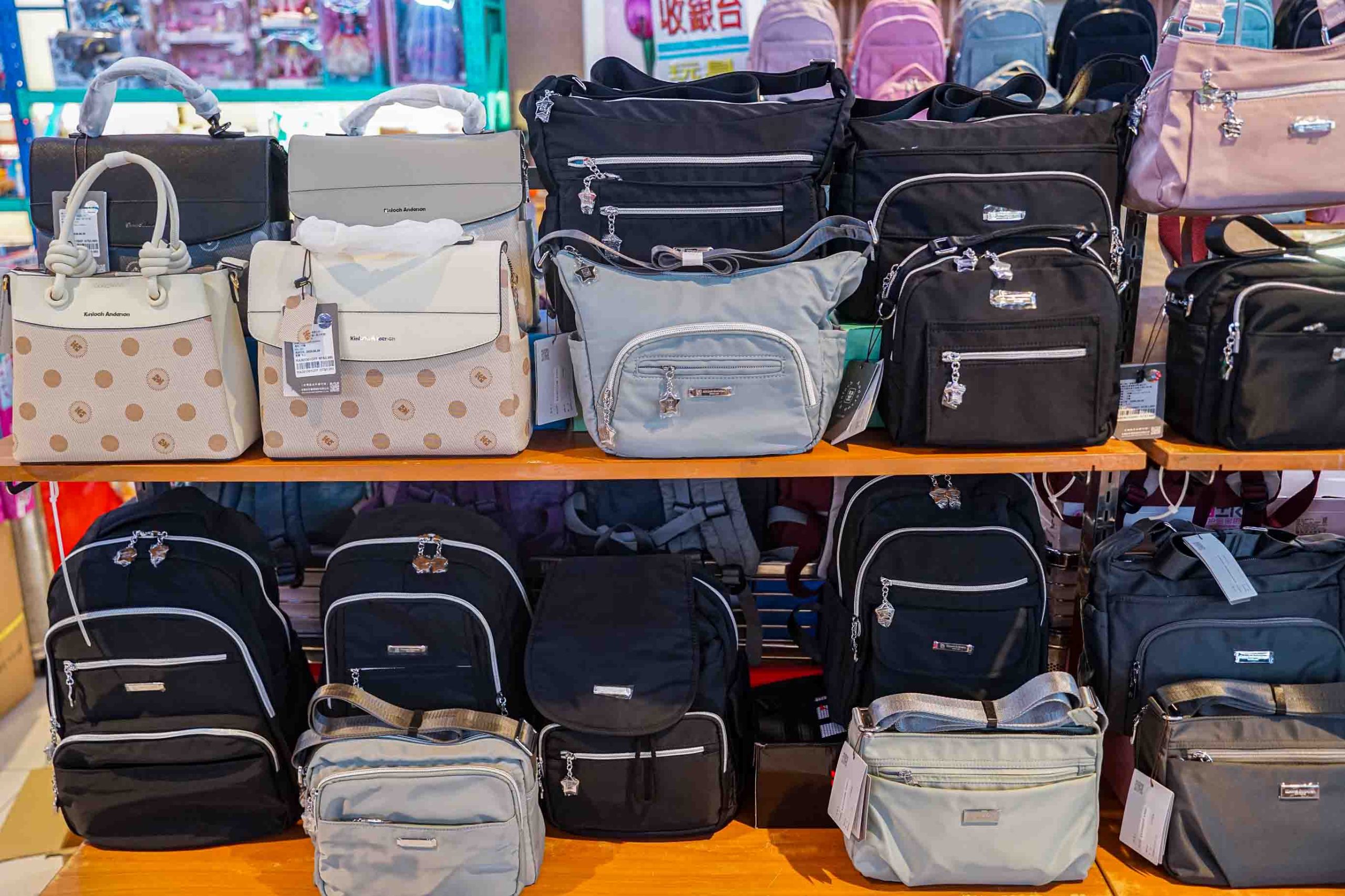 百貨公司專櫃品牌金安德森,各式女包、男背包都很好看,最低只要5.5折就可以帶回家,擁有名牌包就趁現在購入。