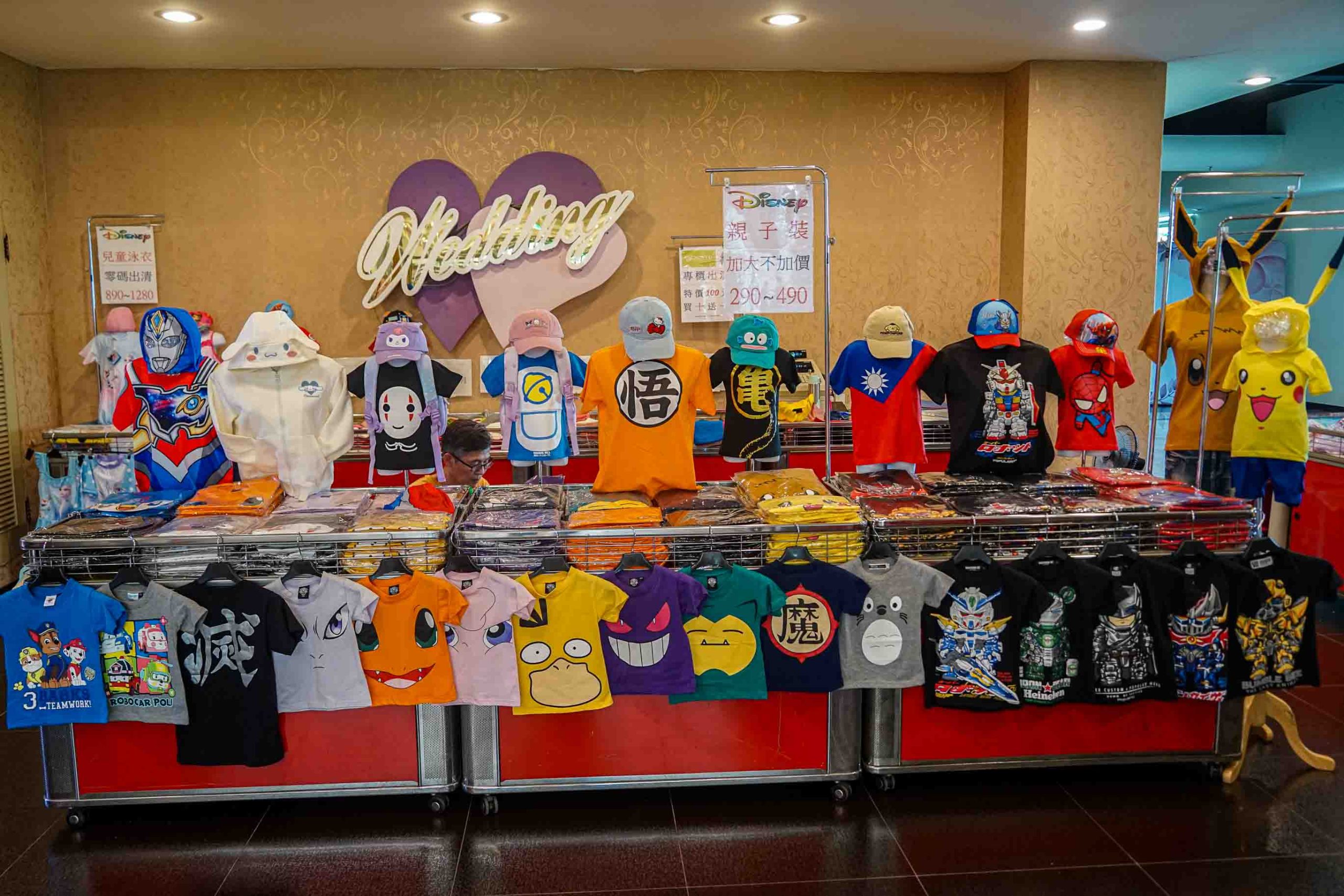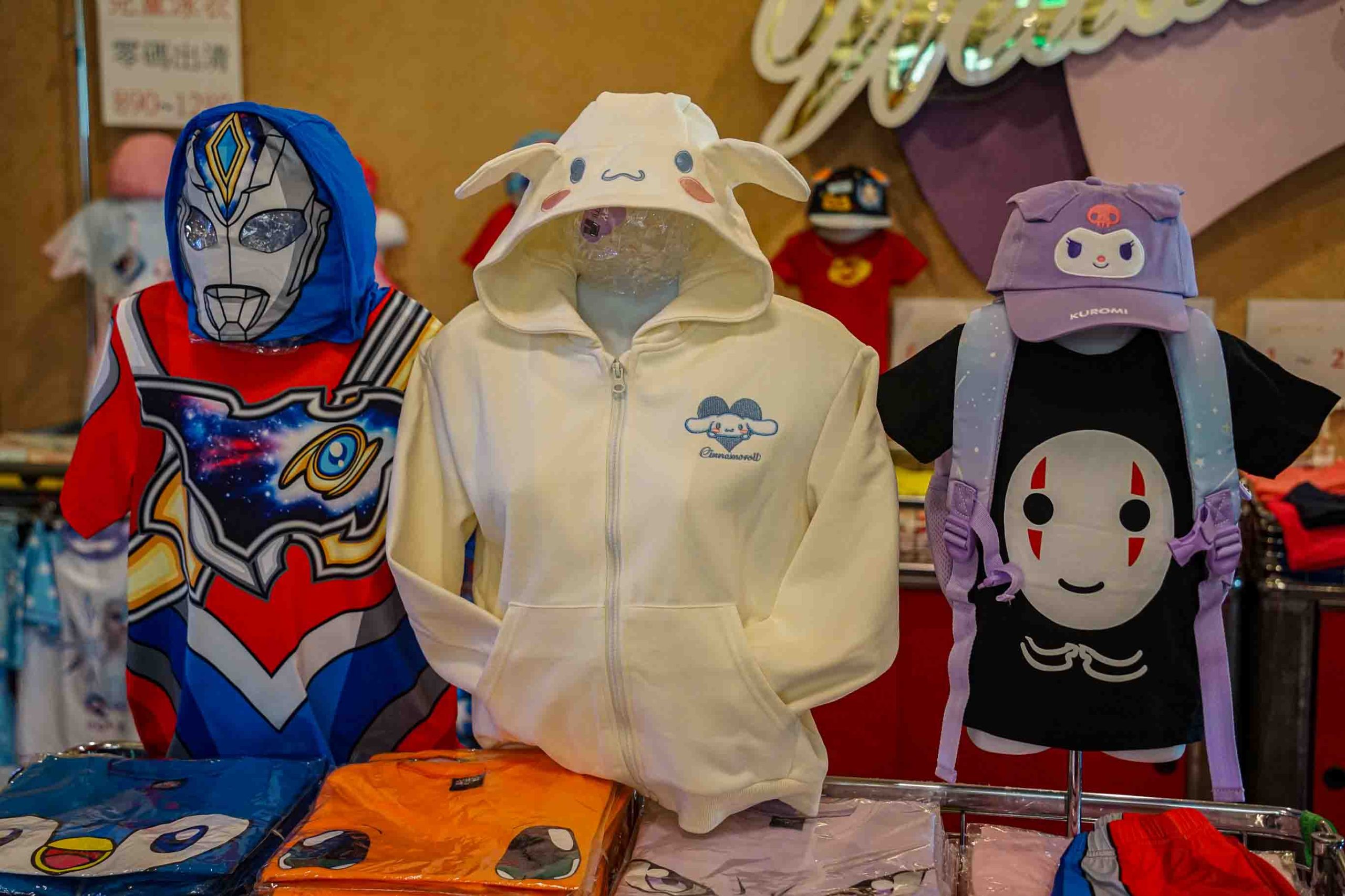 萬聖節裝扮首推!各式小朋友衣服、親子裝,有最受歡迎的寶可夢、漫威英雄人物、蜘蛛人、三麗鷗,都是相當吸睛的卡通角色,特別是市面少見的超人力霸王款外套,很多家長會買給小朋友穿搭,相當帥氣喔,這次又進了不少新款喔,有新品快龍T。