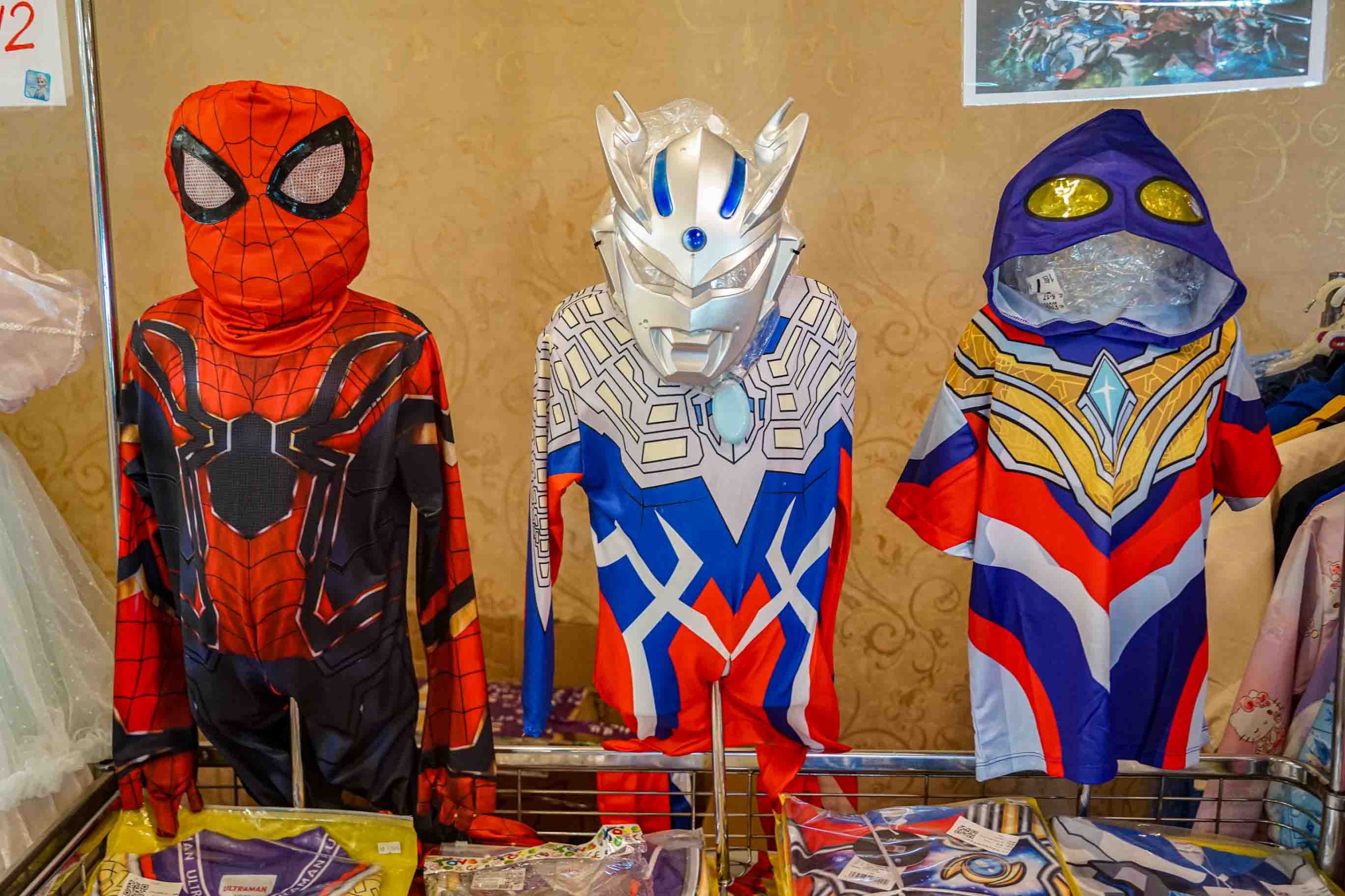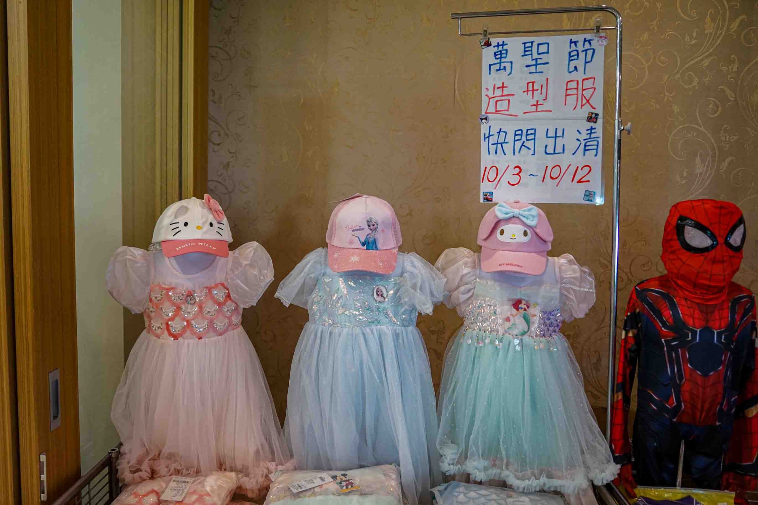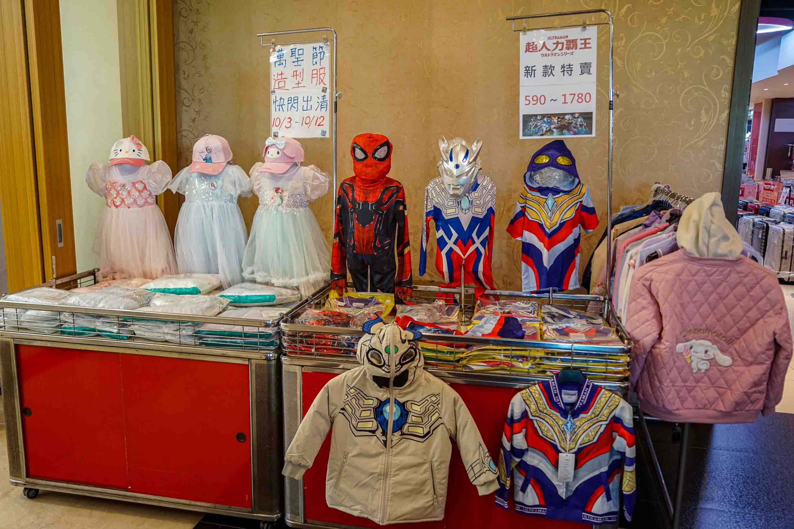 萬聖節公主裝、奧特曼服裝、蜘蛛俠裝扮,這裡都買的到。