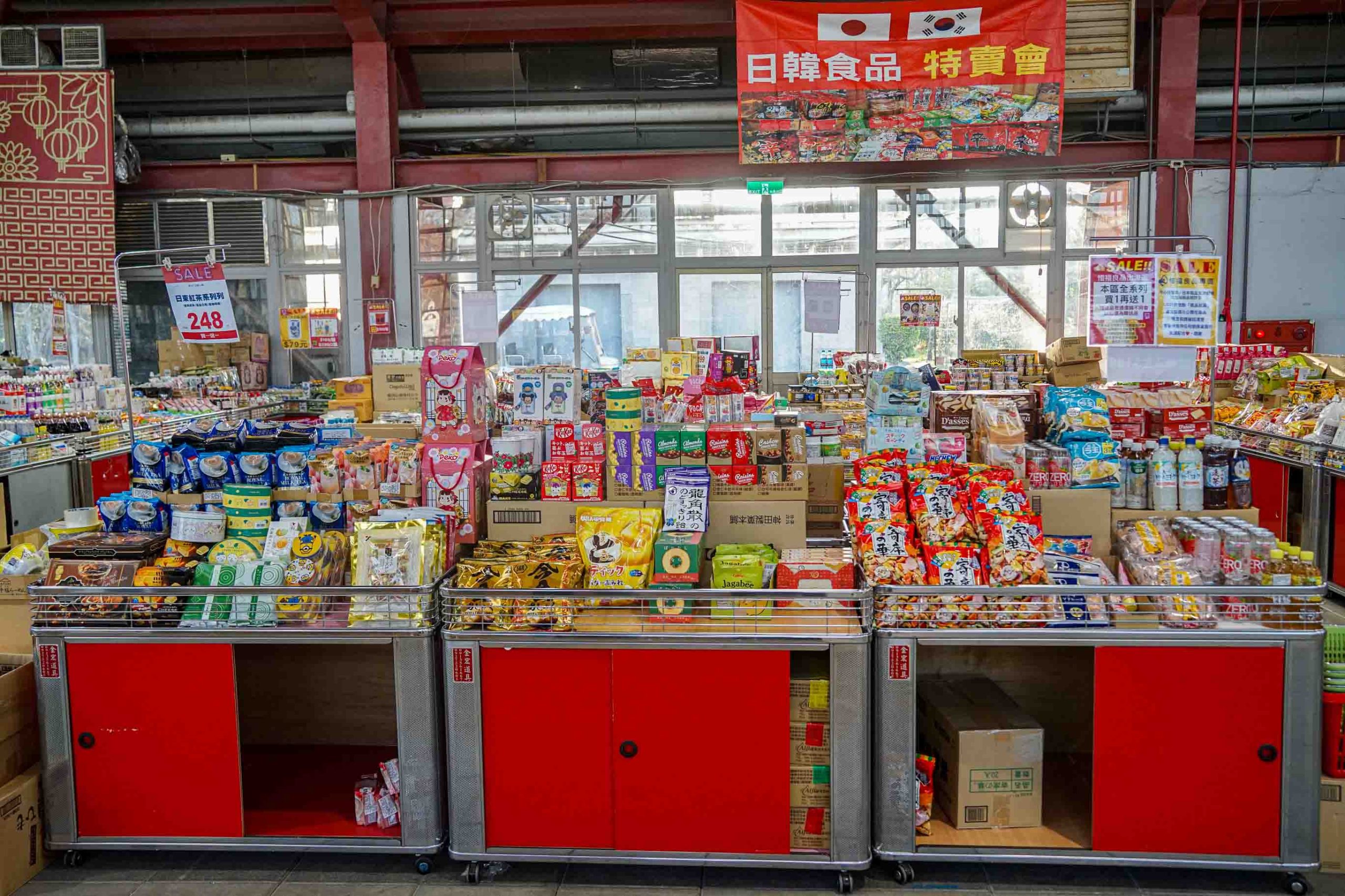 現場的日本進口零食飲料餅乾泡麵等商品真的很多,歡迎現場選購喔。