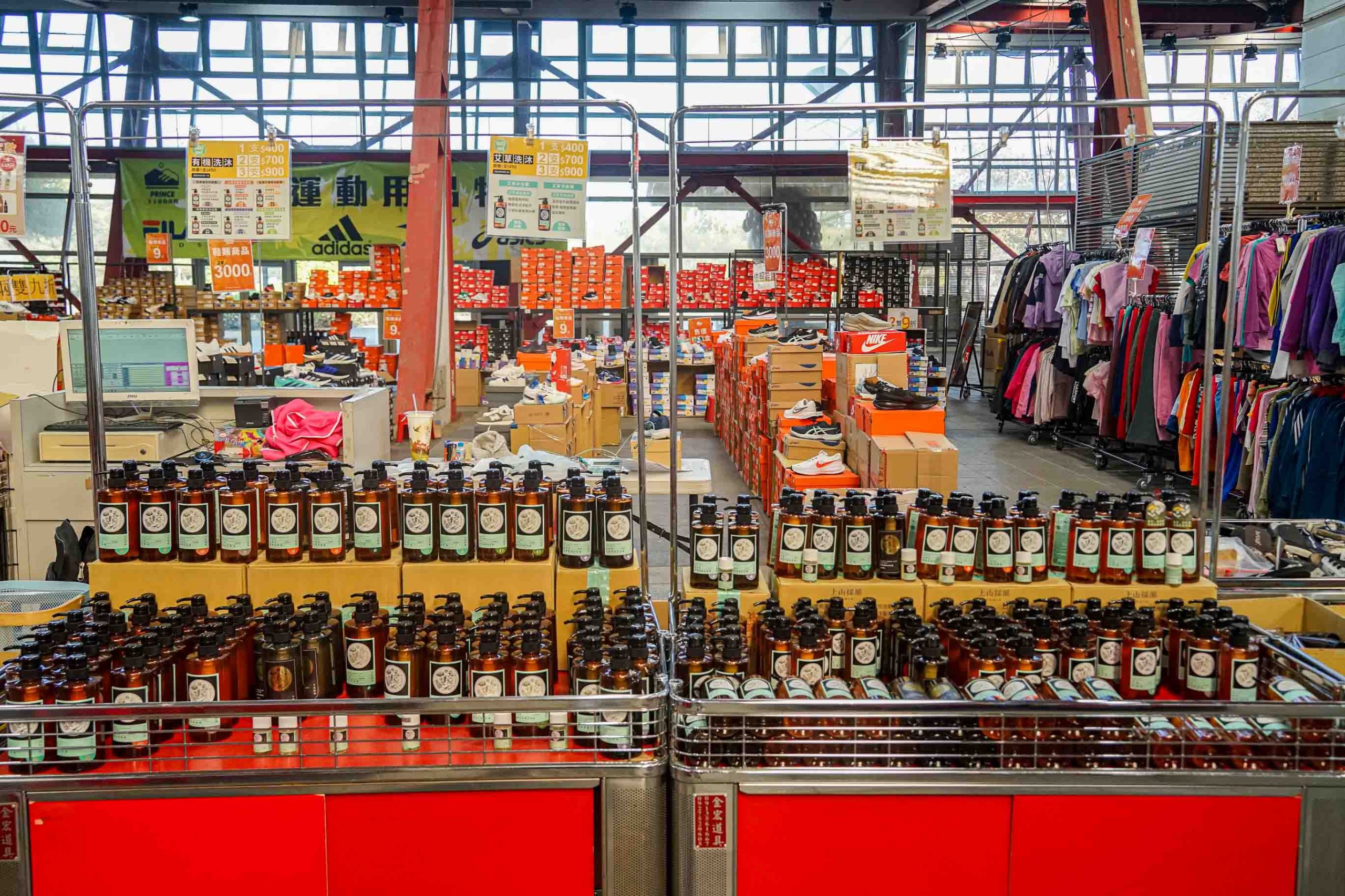 現場還有各式運動衣服特價中。有任何問題都有工作人員可以詢問。