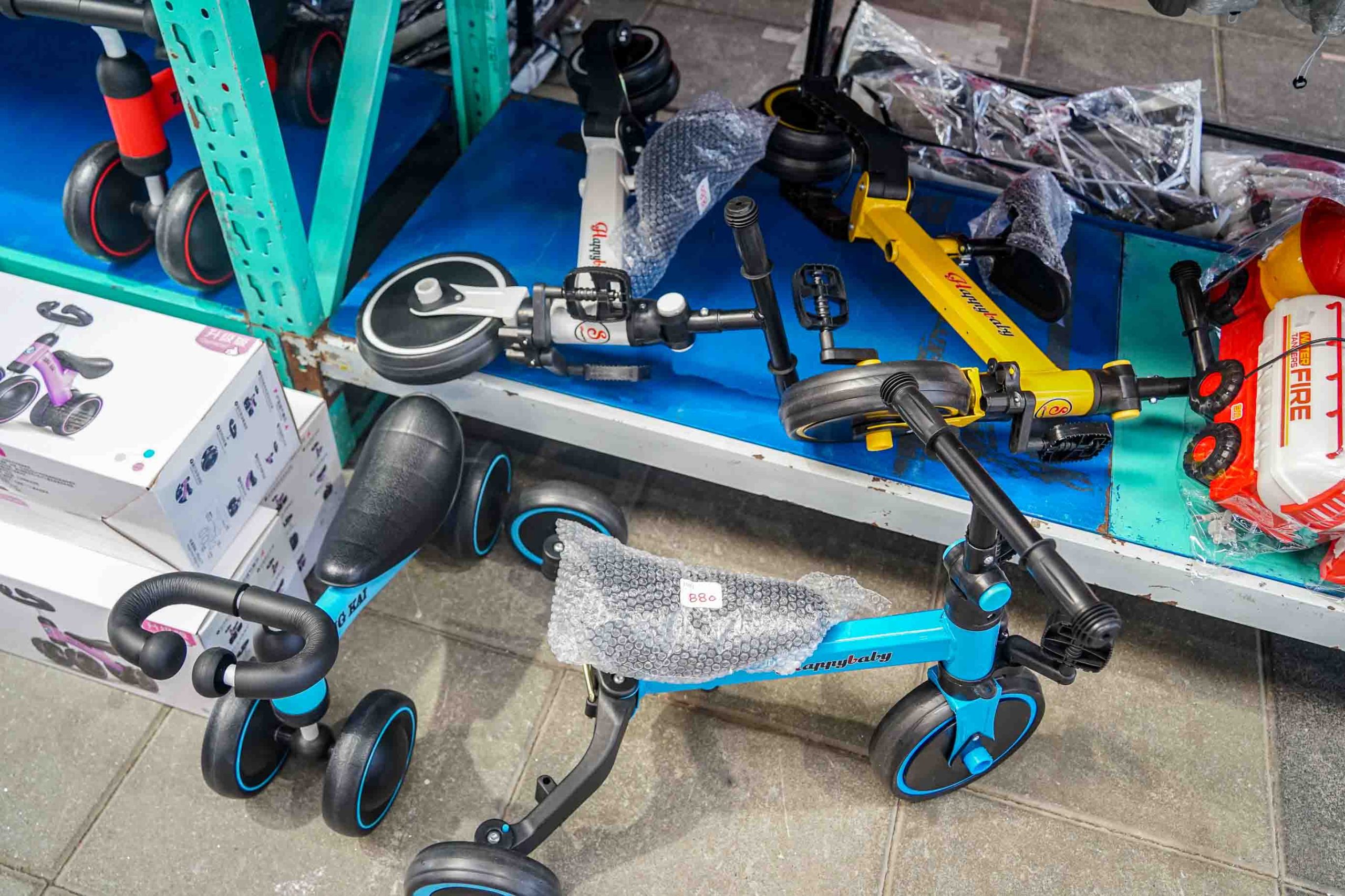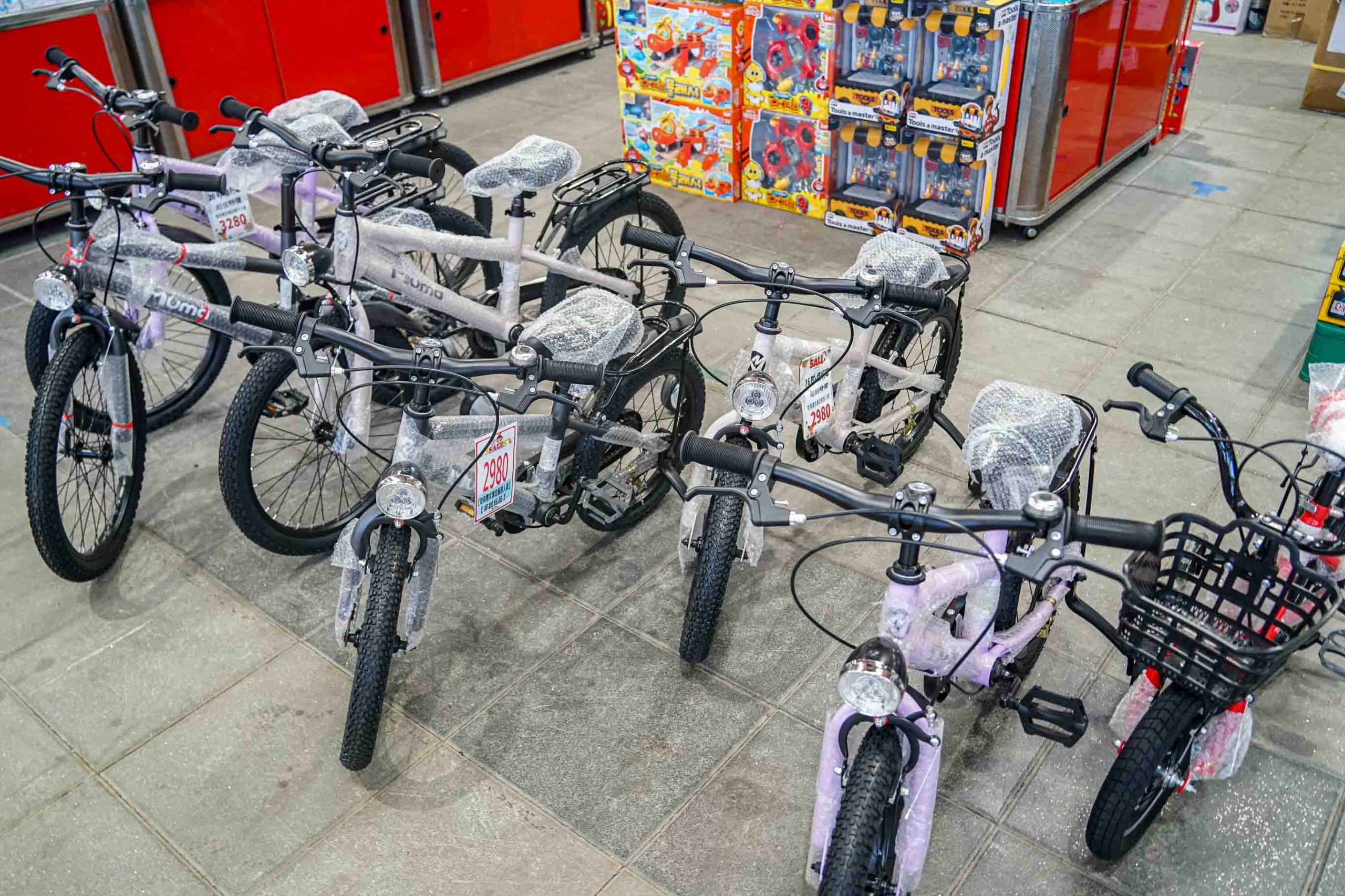 玩具學步車等上方都有標示價格,價格公開透明。
