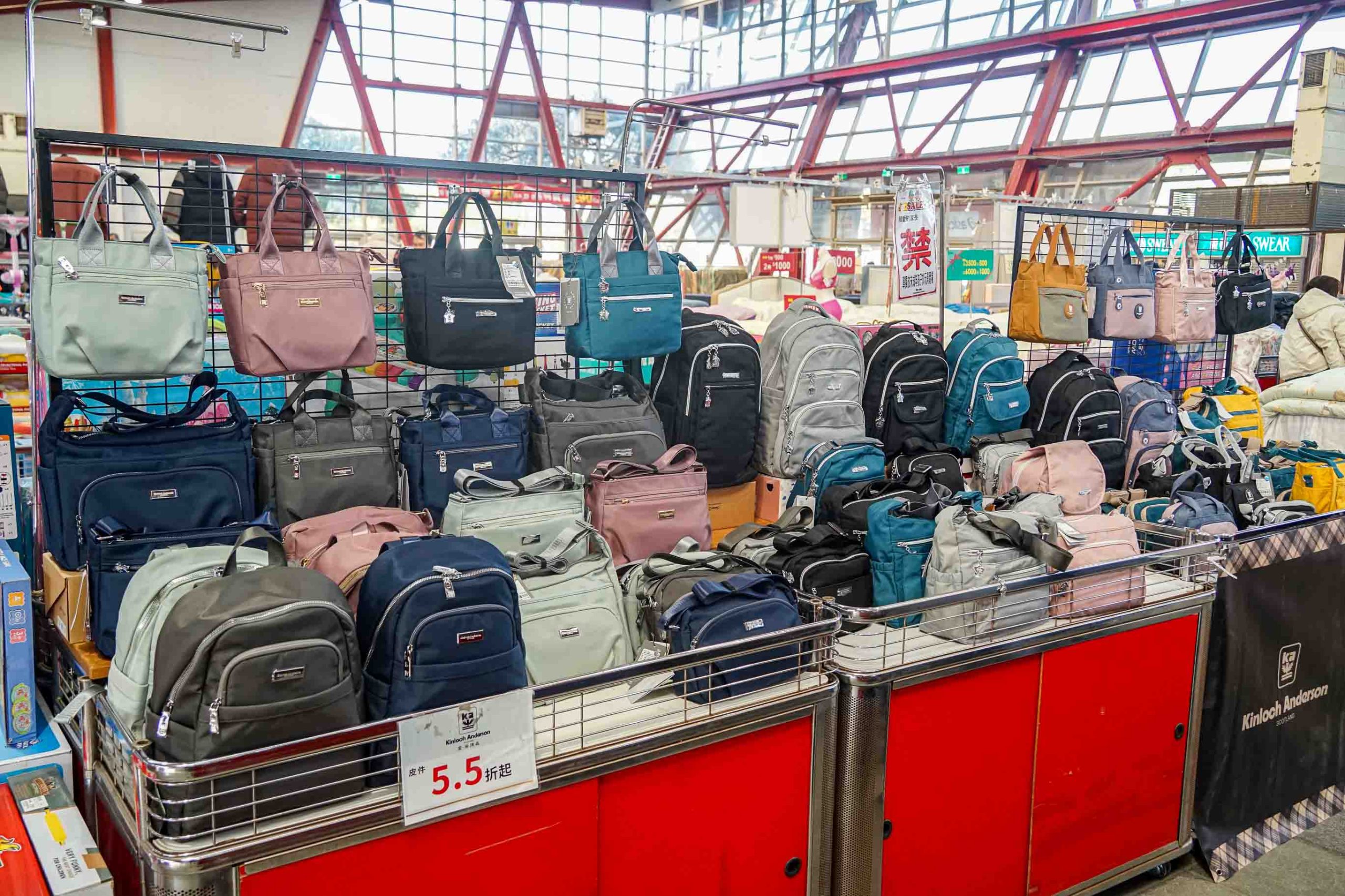 百貨公司專櫃品牌金安德森,各式女包、男背包都很好看,最低只要5.5折就可以帶回家,擁有名牌包就趁現在購入。